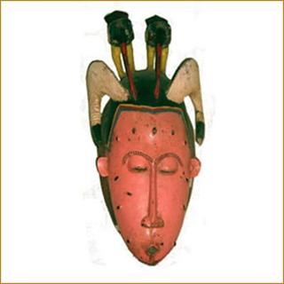 Masque en bois peint en provenance de la Côte d'Ivoire. on retrouve sur le dessu du masque, deux kalaos, oiseaux très représenté dans l'art africain. 50 cm de hauteur par 18 cm de large